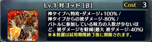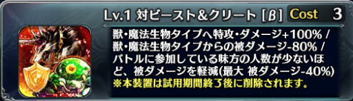 対タイプ系はそのタイプからのダメージを80%軽減、そしてそのタイプへ与えるダメージを+100%、さらに参加人数に応じて全ての被ダメージを軽減します。