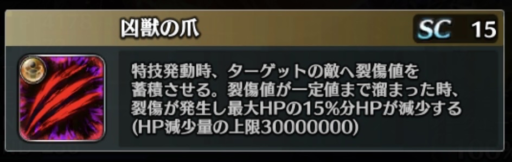 UR雷獣討伐奇譚を付けると裂傷値ボーナス+150%され、